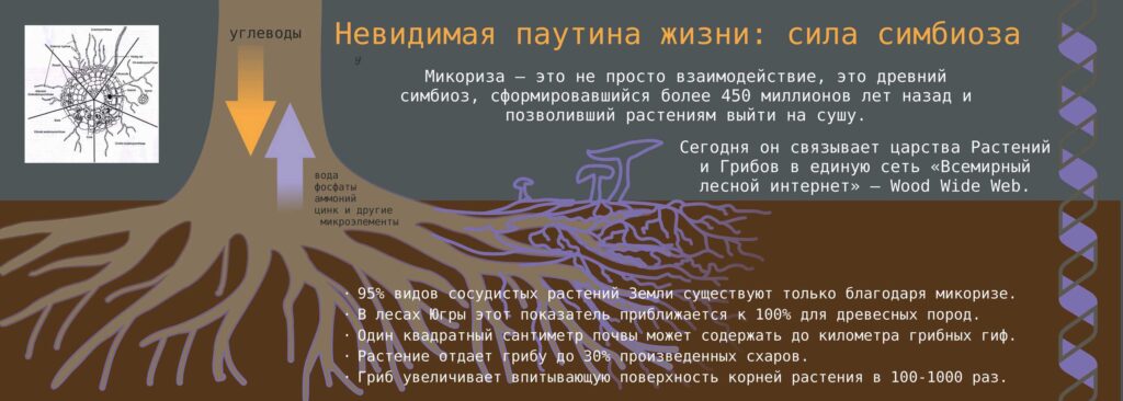 Исследование ведётся по гранту Фонда научно-технологического развития Югры. О самом древнем на земле союзе и о том, как грибы спасают леса и климат, рассказывает новая выставка. Посетители не только узнают, как работает микоризный симбиоз и как его изучают учёные ЮГУ. Здесь также можно создать своё микоризное чудо.